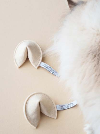You can’t read a cat’s palm. We’ve tried. So the only way to tell your kitty’s future is to bring home a KITTY FORTUNE COOKIE. Stuffed with organic catnip, this clever little toy will have your cat chasing, pouncing, and predicting endless good fortune.