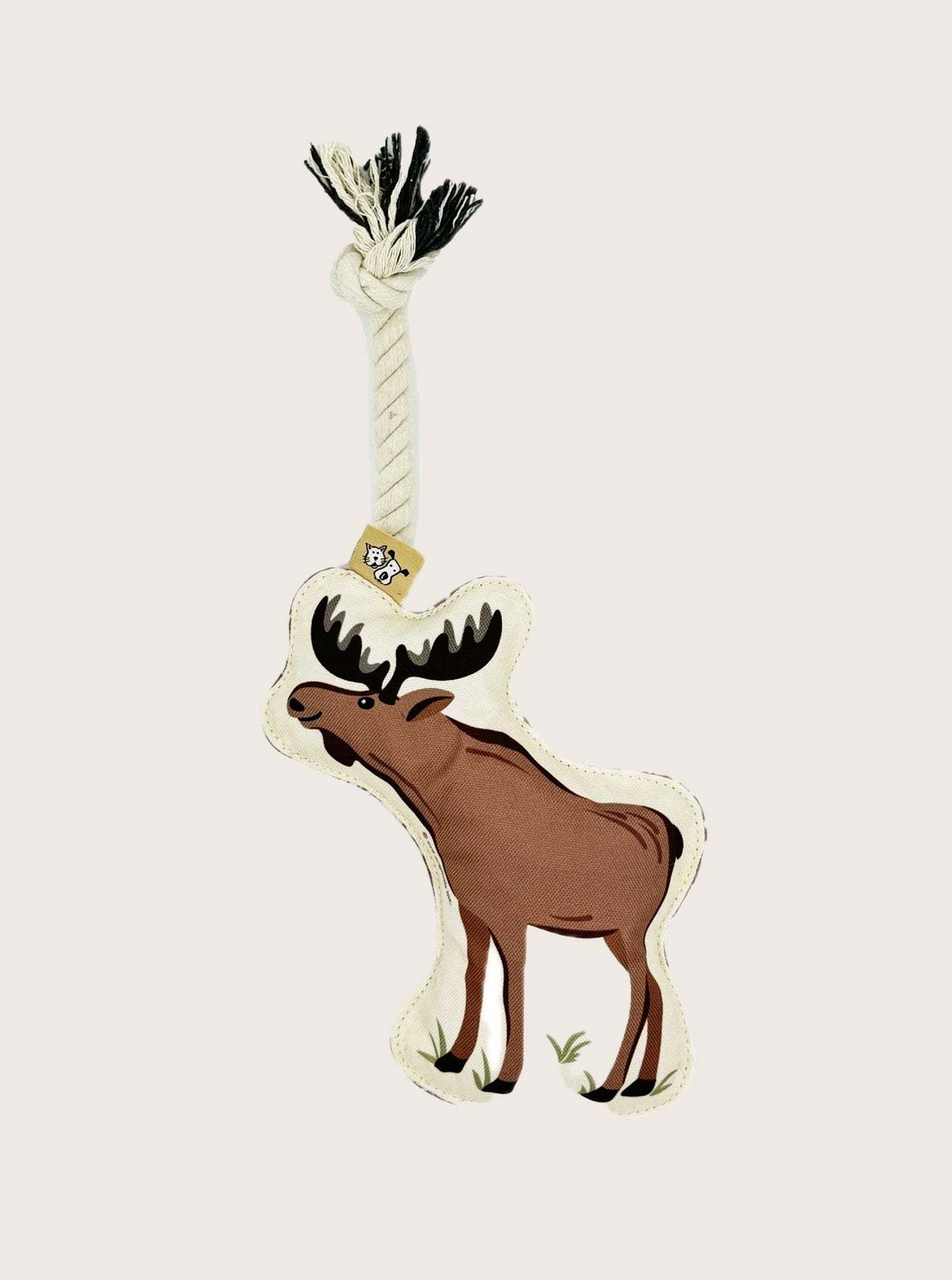 Does your beast have a more refined sense of adventure that necessitates reservations and full service hotels? The MOOSE ROPE TOY by ORE provides the excitement of animal spotting on an adventure, without having to get your paws dirty. This rope toy is perfect for tug-o-war, then a long nap cuddled up on the plush moose. Made of cotton and one squeaker, this toy has it all!