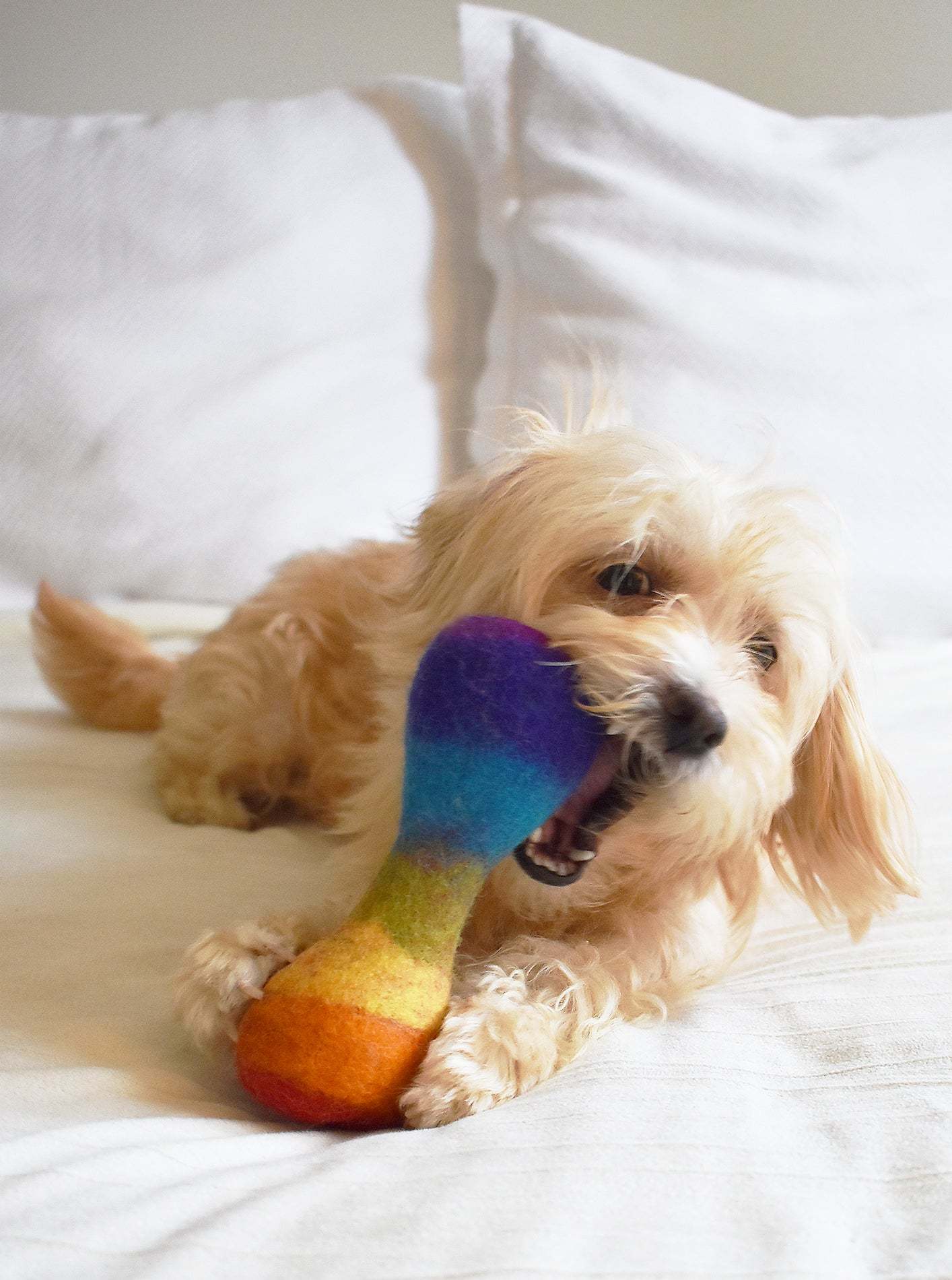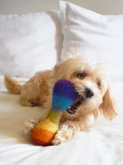 So, to help remind us all that the “rain” we face will always pass and a “rainbow” of love will follow, we thought our beasts could help us out! With a RAINBOW WOOLBONE, all beasts can carry the message that love is a superpower we all possess.